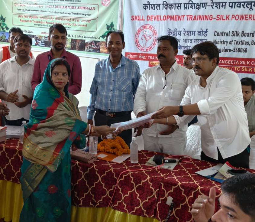 केंद्रीय रेशम बोर्ड, वस्त्र मंत्रालय, भारत सरकार के उप सचिव (तकनीकी) एवं समर्थ योजना के नोडल अधिकारी दशरथी बेहेरा ने रविवार को संगीता सिल्क क्रियेशन, केशरीपुर, लोहता (वाराणसी) में संचालित समर्थ योजना का निरीक्षण किया। इस अवसर पर उन्होंने प्रशिक्षण प्राप्त लाभार्थियों को प्रमाण पत्र वितरित किए। बेहेरा ने बताया कि प्रशिक्षण प्राप्त लाभार्थियों को ₹5100 की सहायता राशि प्रदान की जाती है, जो पूर्व बैचों को वितरित की जा चुकी है तथा नए बैचों को यह राशि सीधे उनके खातों में हस्तांतरित कर दी जाएगी। कार्यक्रम में उत्तर प्रदेश सरकार के सहायक निदेशक ए.के. राव भी उपस्थित रहे। उन्होंने प्रतिभागियों को बताया कि केंद्र एवं राज्य सरकार की विभिन्न योजनाओं के तहत 75% एवं 90% की छूट के साथ मशीनें कैसे प्राप्त की जा सकती हैं। इसके अतिरिक्त, केंद्रीय रेशम बोर्ड के सहायक निदेशक नितिन ने “मेरा रेशम – मेरा अभिमान” अभियान की जानकारी दी तथा रेशम की खपत एवं रेशम से बुनाई को प्रोत्साहित करने के लिए प्रेरित किया। इस अवसर पर एक रोड शो भी आयोजित किया गया, जिसमें लगभग 200 प्रतिभागियों ने उत्साहपूर्वक भाग लिया। ग्राम प्रधान अभय ने अपने संबोधन में केंद्र एवं राज्य सरकार के अधिकारियों का धन्यवाद ज्ञापित किया। कार्यक्रम में संगीता सिल्क क्रियेशन के विशाल, प्रशिक्षण प्राप्त लाभार्थी दिनेश, विजय, रीमा, बन्नी तथा मास्टर ट्रेनर्स सोनू मौर्या, अशोक मौर्या, अभिनव सिंह, सौरभ सहित अन्य लोग उपस्थित रहे।