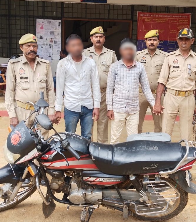 वरिष्ठ पुलिस अधीक्षक मीरजापुर द्वारा जनपद में शांति एवं कानून व्यवस्था को सुदृढ़ बनाये रखने तथा अपराध की रोकथाम एवं अपराधियों के विरूद्ध चलाये जा रहे अभियान व वाहनों की चोरी एवं बिक्री करने वालों के विरूद्ध प्रभावी कार्यवाही करते हुए अभियुक्तों की गिरफ्तारी/बरामदगी करने हेतु जनपद के समस्त थाना प्रभारी निरीक्षक/थानाध्यक्षगण को निर्देश दिये गये हैं। उक्त निर्देश के अनुक्रम में पुलिस अधीक्षक आपरेशन व क्षेत्राधिकारी आपरेशन के नेतृत्व में थाना सन्तनगर पुलिस टीम को बड़ी सफलता हाथ लगी है। दिनांकः 18.09.2025 को थाना सन्तनगर पुलिस टीम द्वारा प्राप्त मुखबिर की सूचना के आधार पर थाना सन्तनगर क्षेत्र से 02 शातिर अभियुक्तों 1. शिवशंकर पुत्र खटाई निवासी पाण्डेयपुर थाना लालगंज जनपद मीरजापुर व 2. सुरेश कुमार पुत्र अमर नाथ निवासी पाण्डेयपुर थाना लालगंज जनपद मीरजापुर को गिरफ्तार किया गया। उक्त दोनों अभियुक्तों के कब्जे से चोरी की मोटर साइकिल बरामद किया गया। उक्त गिरफ्तारी व बरामदगी के सम्बन्ध में थाना सन्तनगर पर मु0अ0सं0-111/2025 धारा 303(2),317(2) बीएनएस पंजीकृत कर नियमानुसार अग्रिम विधिक कार्यवाही करते हुए गिरफ्तार अभियुक्तों को जेल भेजा गया।