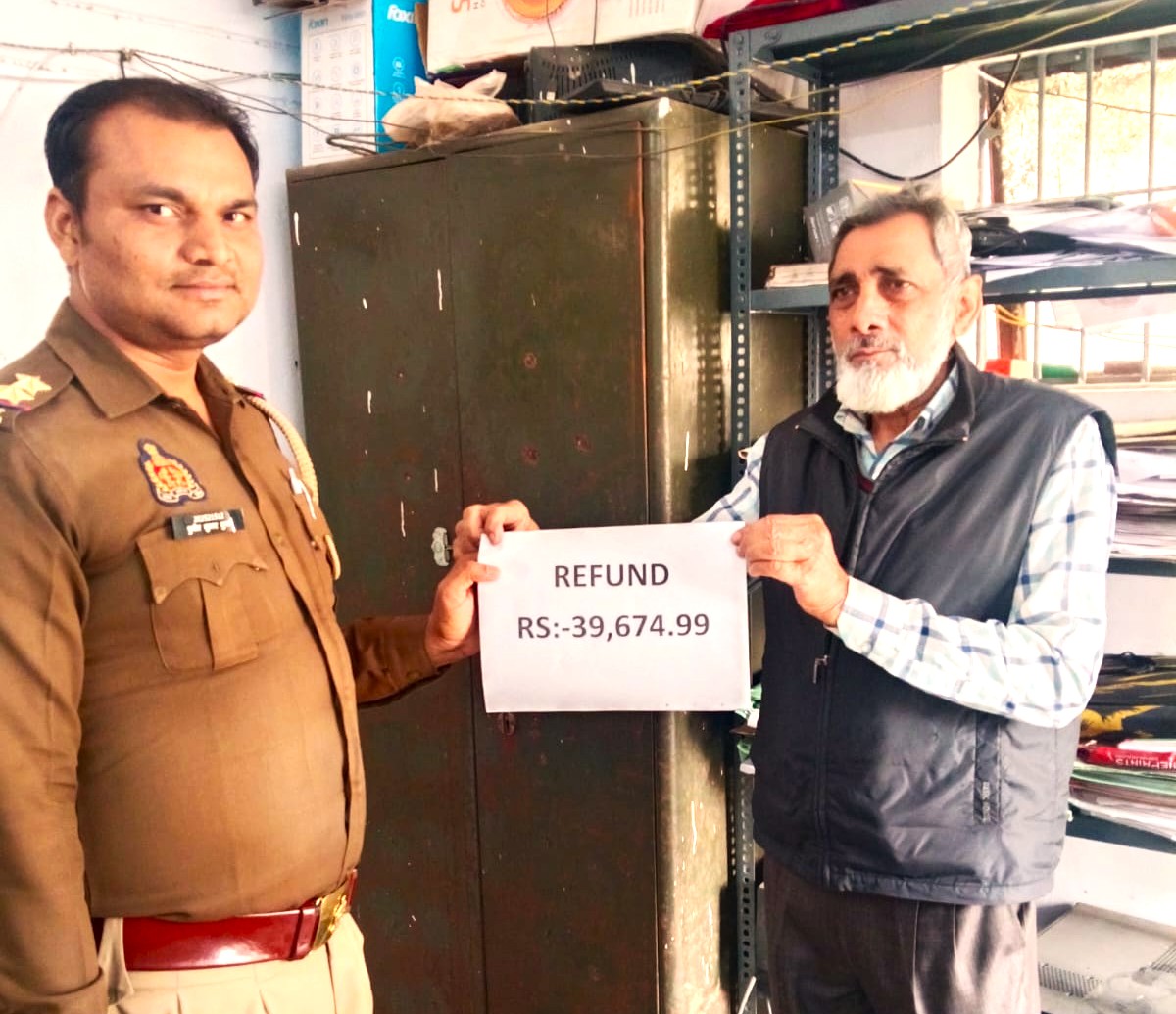 आवेदक जावेद अहमद पुत्र स्व0 बदरुद्दिन नि0 इमलाहा, थाना को0कटरा जनपद मीरजापुर द्वारा अपने साथ हुई ऑनलाइन ठगी की सूचना दिनांक 19.03.2024 को थाना को0कटरा की साइबर सेल में दी गई। जिसमें ठग द्वारा कुल 2,00,000/- रु0 ट्राँसफर करा लिये गये थे। इस संबंध में आवेदक का शिकायत NCRP पोर्टल पर दर्ज किया गया। प्राप्त सूचना के आधार पर थाना कछवा की साइबर सेल टीम द्वारा जांच प्रारंभ की गई है। “सोमेन बर्मा” वरिष्ठ पुलिस अधीक्षक मीरजापुर के निर्देशन में व अपर पुलिस अधीक्षक नगर एवं क्षेत्राधिकारी नगर के नेतृत्व में थाना को0कटरा की साइबर सेल पुलिस टीम द्वारा उपरोक्त जाँच के दौरान धनराशि को शिकायतकर्ता के बैंक खाते में कुल ₹ 39,674.99/- रुपये वापस कराए गये। खाते में पैसे वापस आने पर आवेदक द्वारा थाने पर उपस्थित होकर मीरजापुर पुलिस के पुलिस उच्चाधिकारी एवं साइबर क्राइम टीम थाना को0 कटरा पुलिस टीम की भूरि-भूरि प्रशंसा करते हुए धन्यवाद दिया गया तथा आवेदक को साइबर जागरुकता अभियान के तहत साइबर सम्बन्धी होने वाली ठगी से जागरुक किया गया व और भी लोगों को उनके द्वारा साइबर ठगी से सावधान रहने हेतु बताये जाने की बात बताई गई।